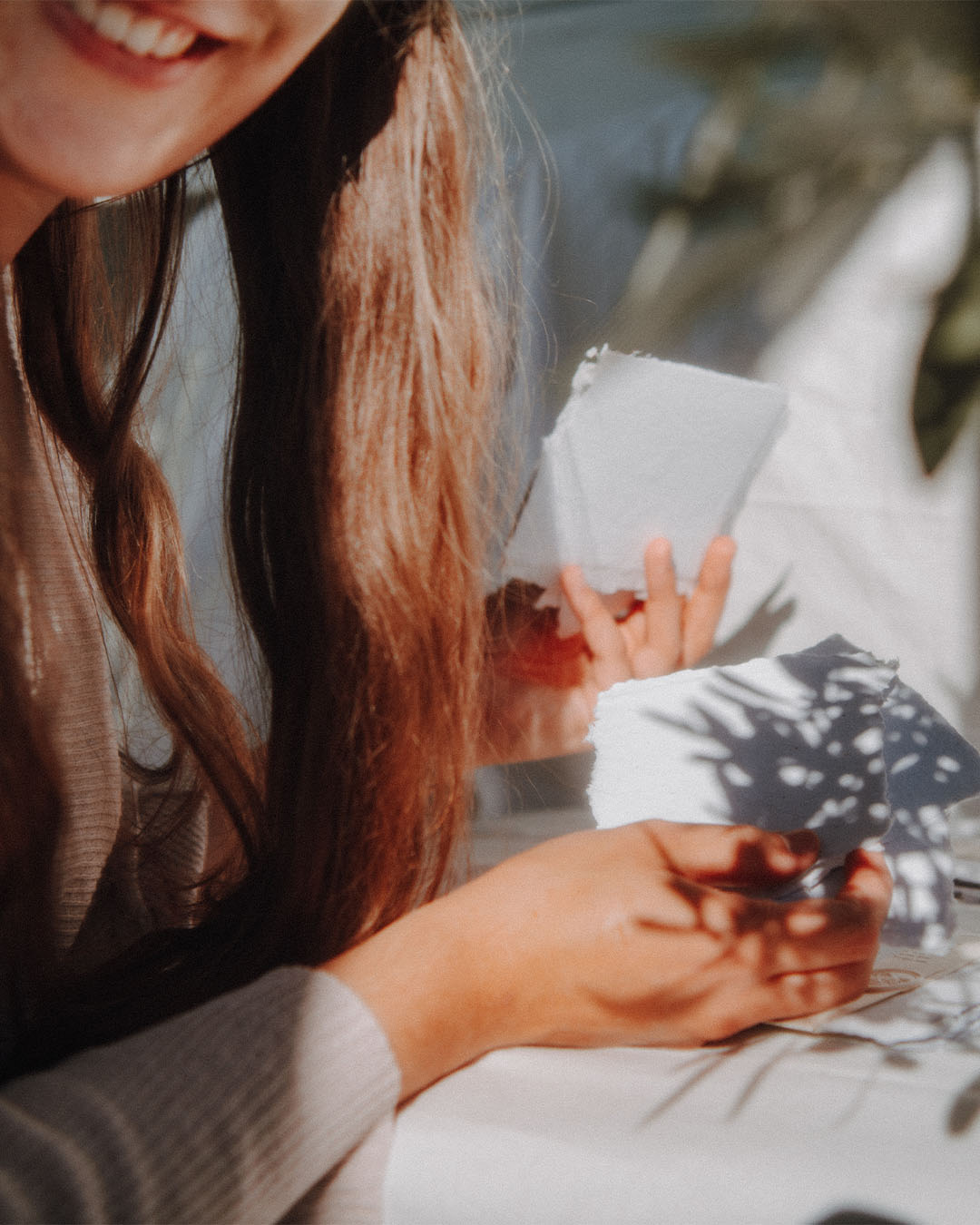 Da das Papier handgeschöpft ist, können Maß, Farbe und Stärke, aber auch Struktur und Beschaffenheit leicht abweichen. Die Büttenpapier-Bögen sind somit echte Unikate für einzigartige Projekte.
